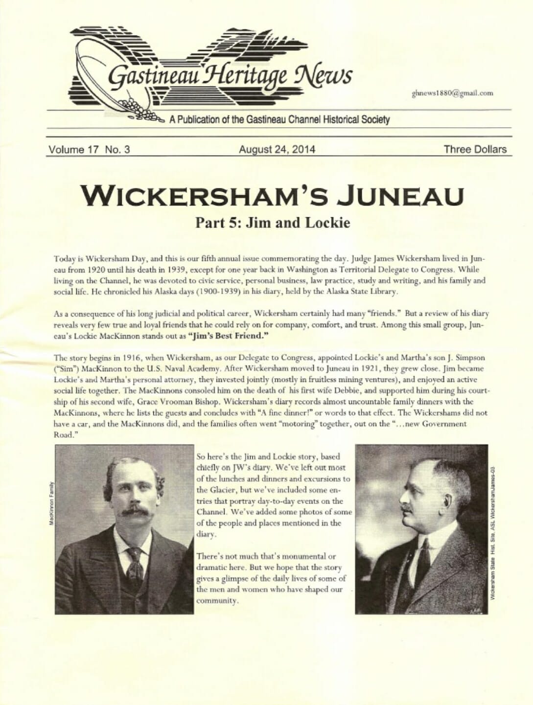 Wickersham’s Juneau Part 5: Jim and Lockie 2014 17(3): 1, 4-11