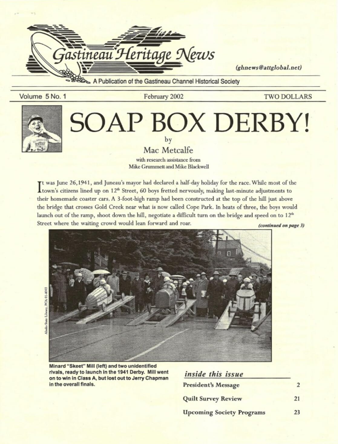 - Soap Box Derby! By Mac Metcalfe with research assistance from Mike Grummett and Mike Blackwell 2002 5(1): 1. 3-7