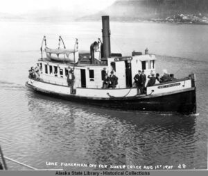 LONE FISHERMAN off for Sheep Creek, August 1st, 1907. Alaska State Library, ASL Place File Photos, ASL-Juneau-Ferries-03 P01-1085.
