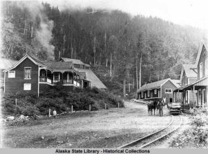 Amalga camp for Eagle River Mining Co., ca. 1910. Alaska State Library, ASL Place File Photos, ASL-Juneau-Vicinity-Eagle-River-Area-01..