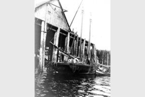 International Fisheries Company, which operated at Tee Harbor, installed a modern cold storage plant to handle halibut and salmon. In the past, the company salted salmon and iced halibut with ice cut in a nearby lake. Juneau’s halibut fleet was up to 30 boats and around a million pounds of fish were shipped south that year.