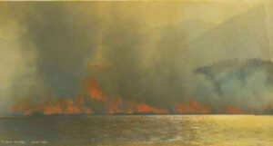 On October 10 a major fire spread by Taku winds destroyed the entire eastern side of Douglas, including the Native village, and the original Treadwell mine area. Past the mine’s cave-in site, other buildings were spared, including the foundry which continued to operate until the 1944 closure of the Alaska June mine. The Treadwell post office was closed the end of May, due to lack of business.